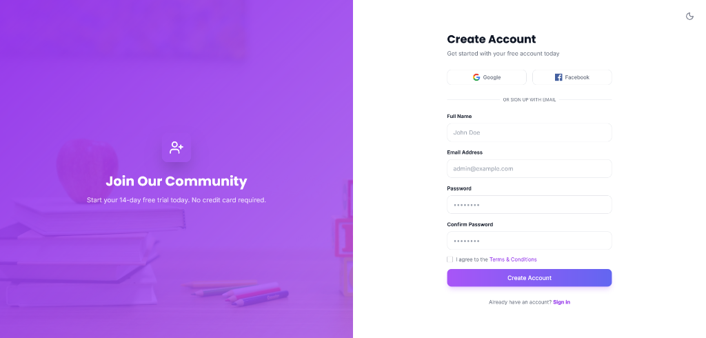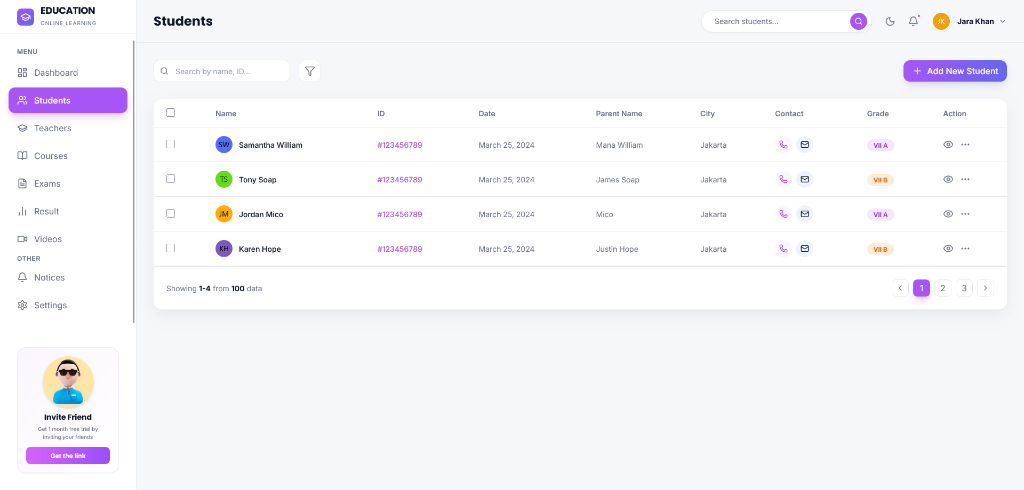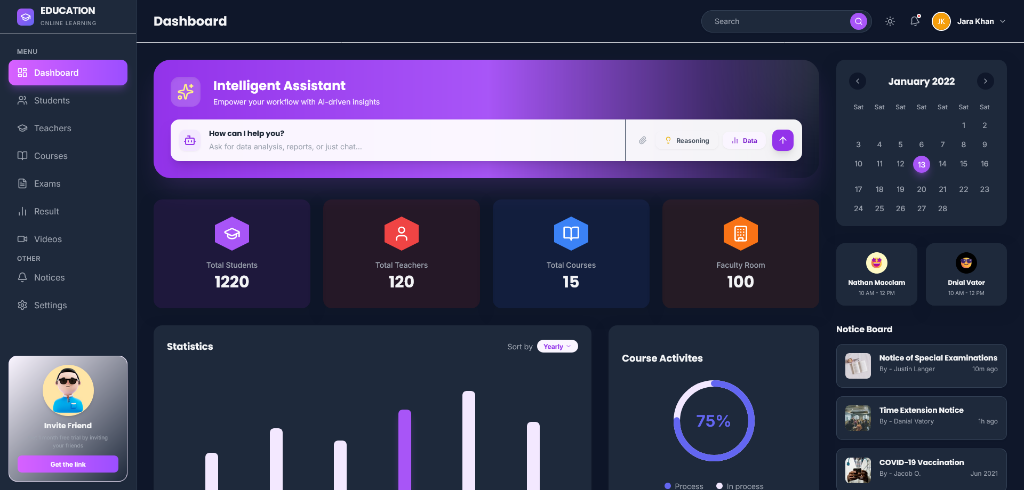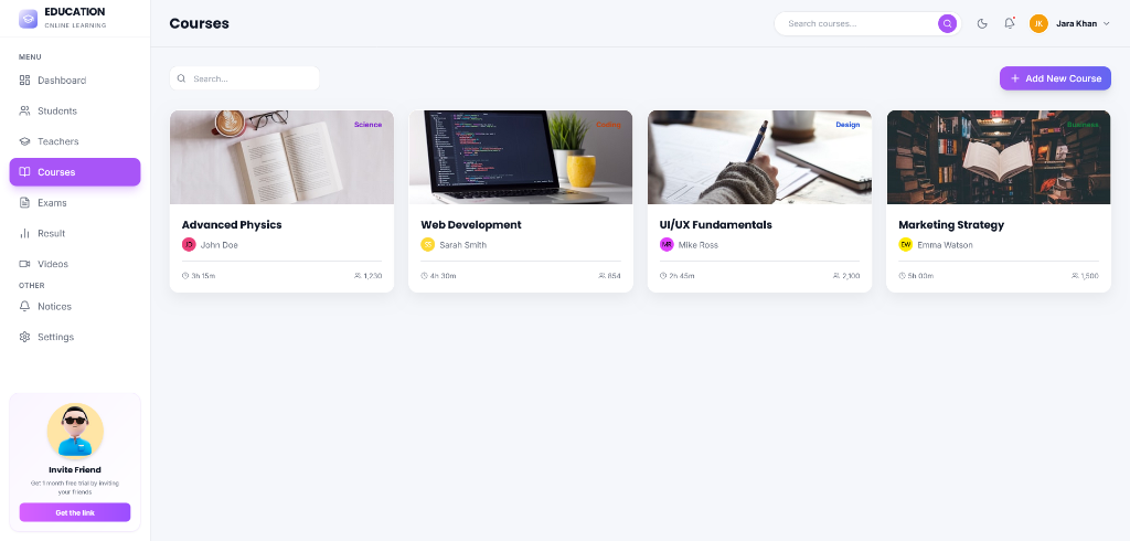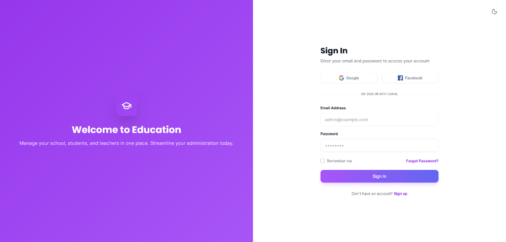 A comprehensive, dark-mode focused admin template for schools, universities, and online learning platforms. Built with Tailwind CSS 3x and modern web standards.